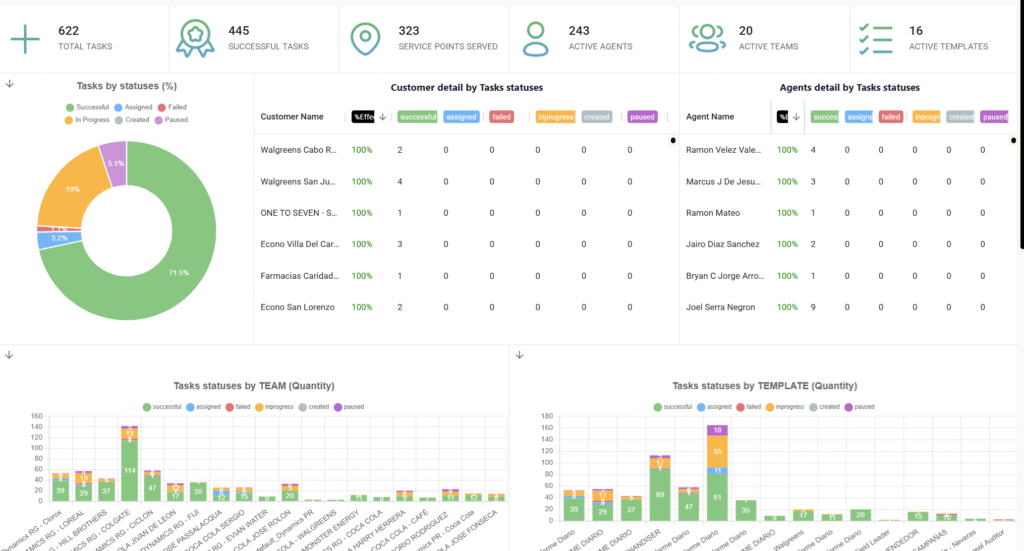 A través de nuestros tableros de control personalizados, tendrás acceso inmediato a los principales indicadores de desempeño (KPIs): cobertura, cumplimiento, inventarios, fotos y resultados por tienda, todo en tiempo real.